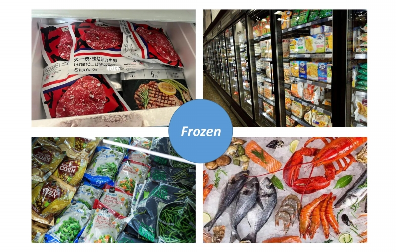 Steak, dumplings, vegetables, seafood, fish, ice cream and all kinds of frozen foods |